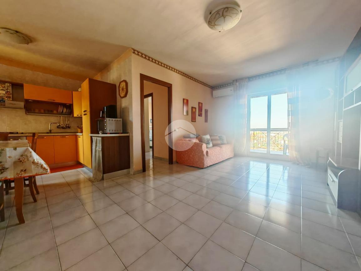 L’ingresso conduce in un ampio salone con cucina living, ambiente unico e funzionale perfetto per momenti di convivialità.